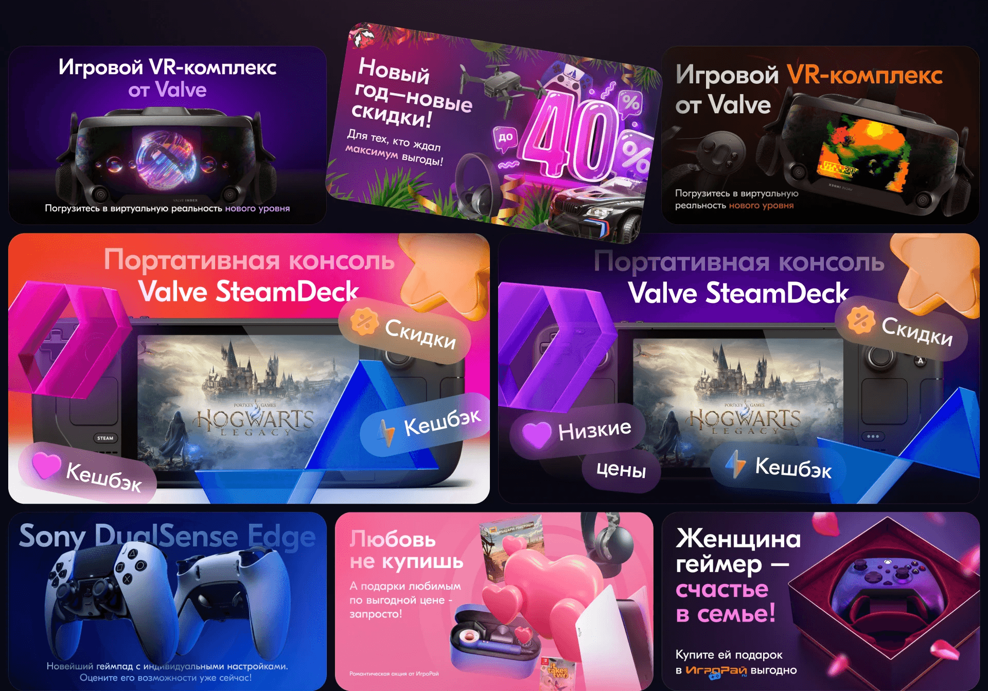The result was a cohesive and energetic brand visual language, improving campaign performance metrics and strengthening IgroRay’s market identity as a modern gaming retailer.