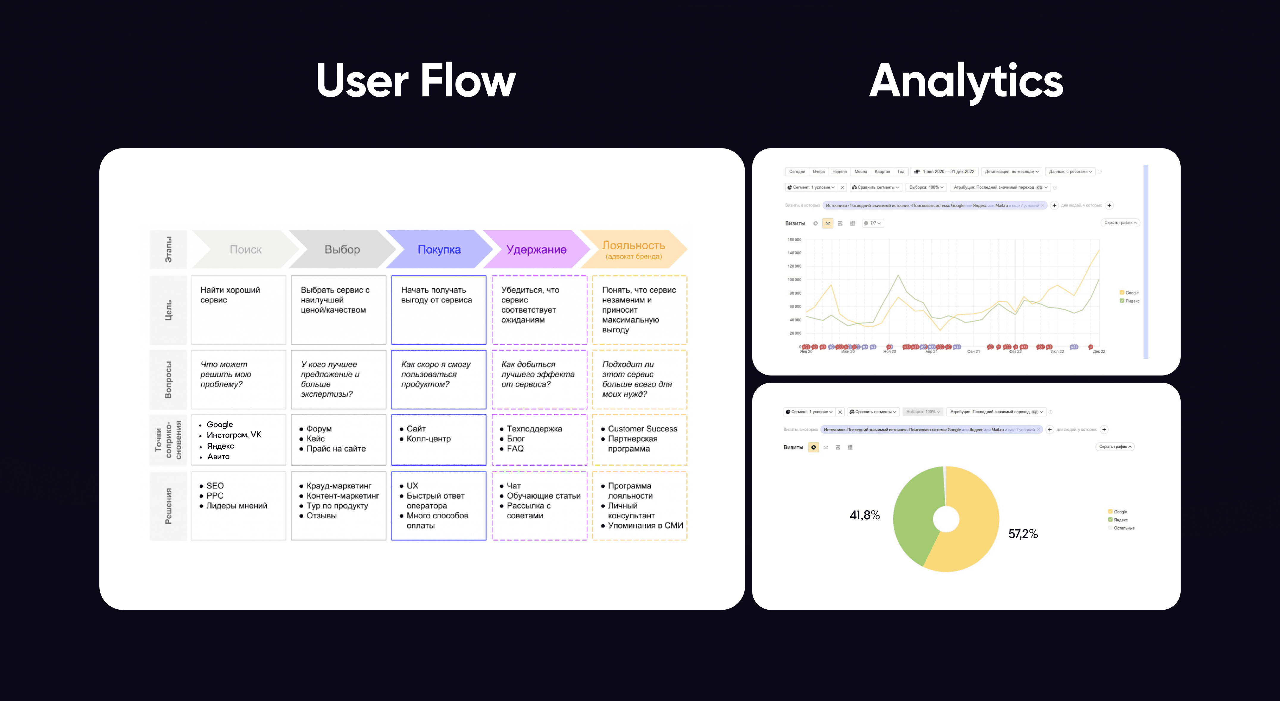 ✦ Analytics & Research — mapped user journeys and sales funnels to identify friction points in navigation and checkout.